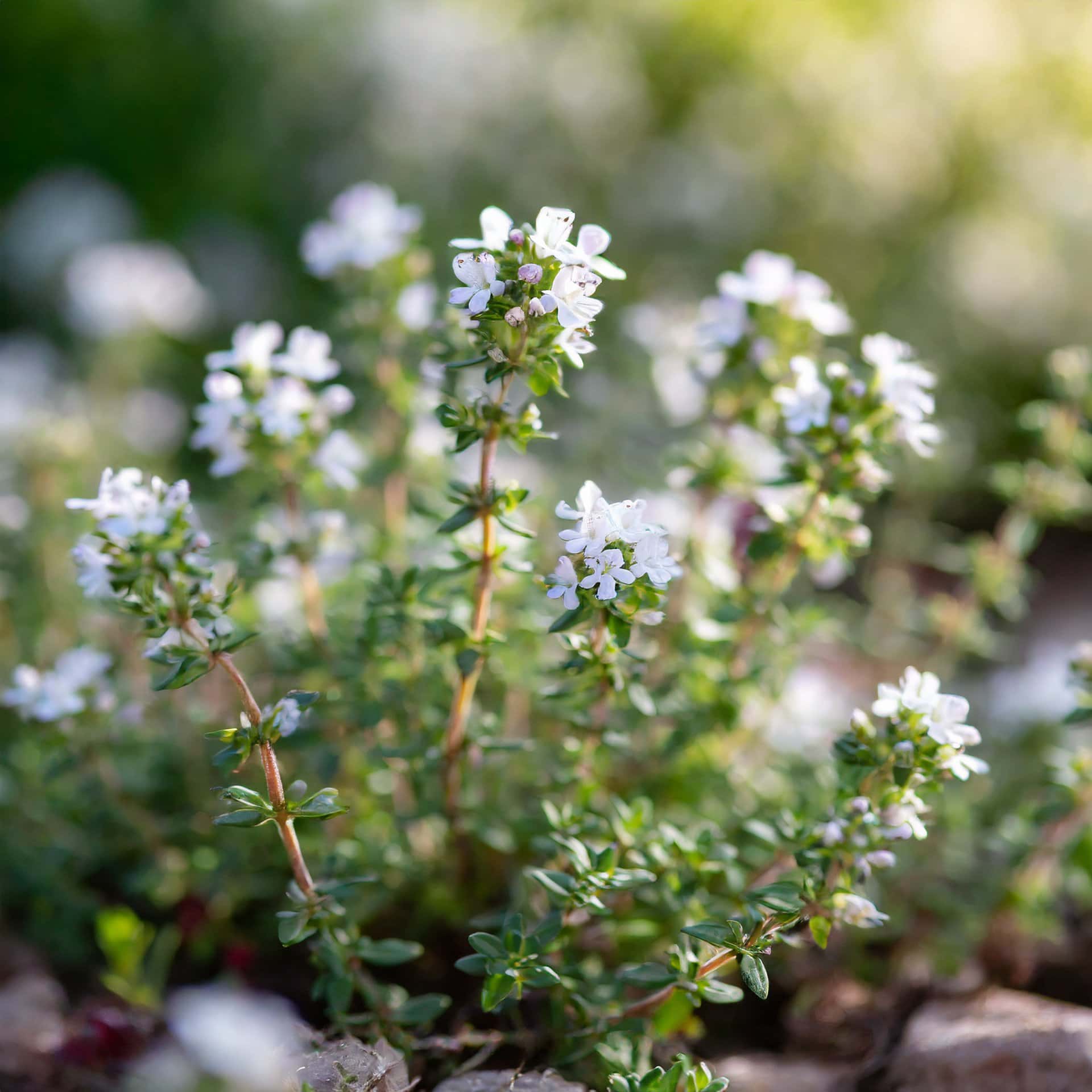 Macierzanka piaskowa ‘Albus’ to niska, pachnąca roślina, która pięknie otula ziemię jasnym kwiatem i ciepłym, ziołowym aromatem. W codziennym rytuale wystarczy musnąć jej drobne listki, by w powietrzu pojawiła się nuta lata. Jest wdzięczna, spokojna i bardzo „do życia” — zwłaszcza tam, gdzie jest sucho i słonecznie.