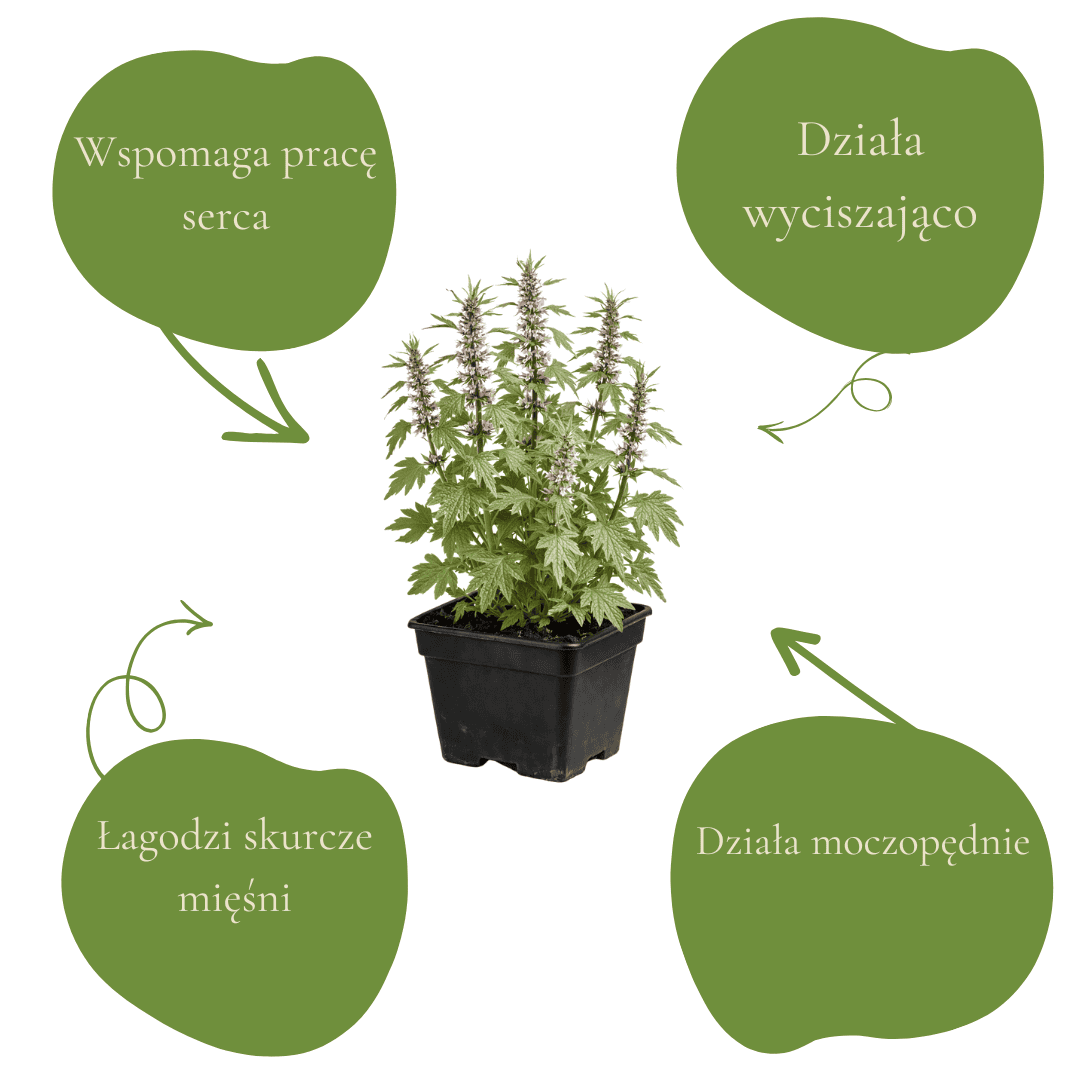 Serdecznik lubi słońce lub lekki półcień i dość żyzną, umiarkowanie wilgotną glebę, choć po przyjęciu się bywa odporny i wybacza drobne zaniedbania. To roślina, która potrafi rosnąć wysoko, więc dobrze wygląda przy płotach, przy kompostowniku albo w ziołowym zakątku, gdzie może swobodnie się rozwinąć. Jeśli chcesz utrzymać ładny pokrój, przytnij go po kwitnieniu, a zbiór ziela najlepiej wypada na początku kwitnienia, gdy pędy są najbardziej aromatyczne.