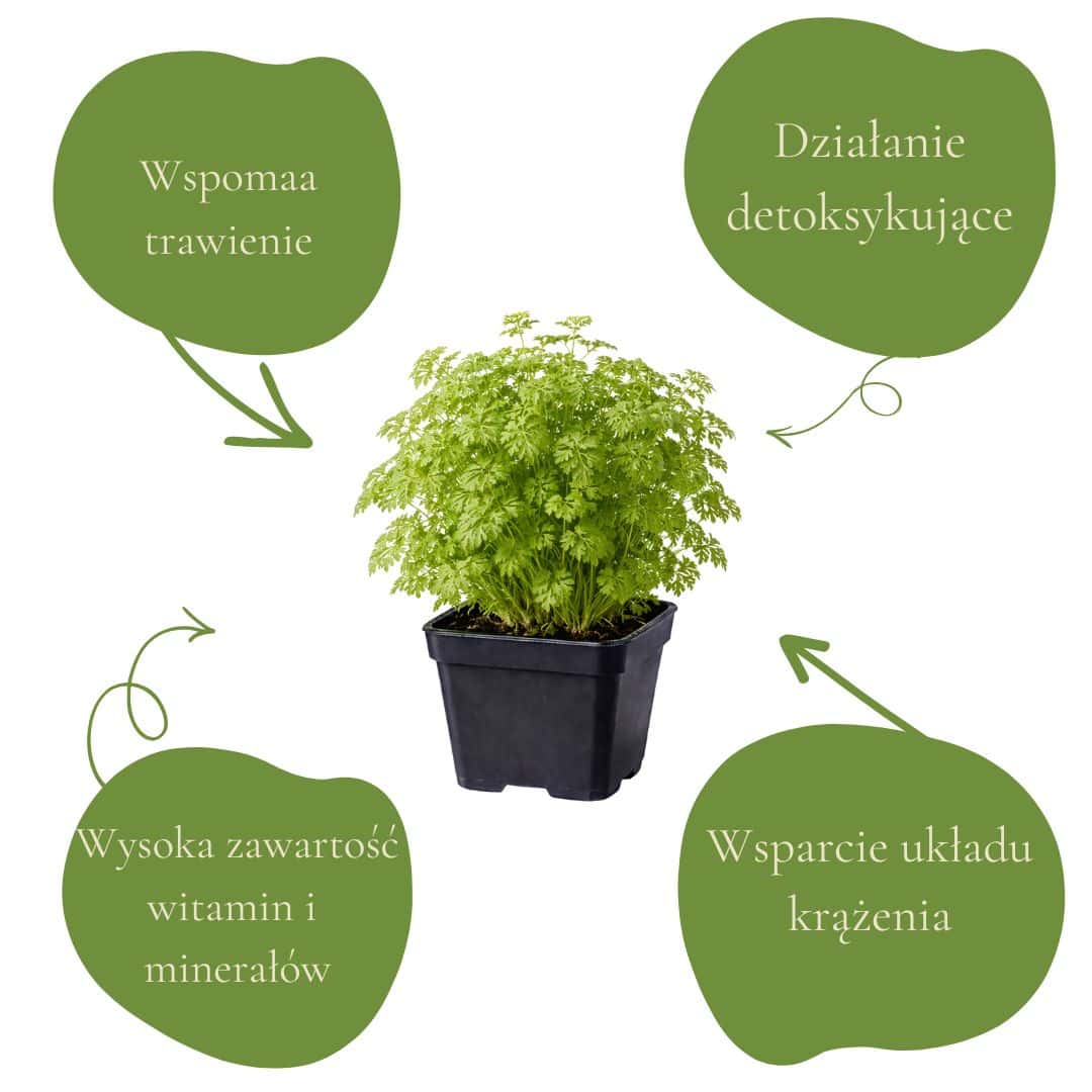 Trybula jest tradycyjnie stosowana jako łagodne zioło kuchenne, które może sprzyjać poczuciu lekkości po posiłku, zwłaszcza gdy jemy prosto, sezonowo i nie za ciężko. W praktyce najczęściej wspiera dobre samopoczucie przez to, że zachęca do dodawania świeżej zieleniny do codziennego jedzenia, a jej zapach i smak wnoszą wiosenną świeżość. Najmocniej działa jako delikatny „zielony akcent” w diecie, który pomaga jeść uważniej i lżej, bez potrzeby robienia z niej zioła „od wszystkiego”.